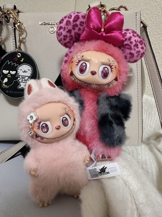 一躍話題になったディズニーのヒョウ柄シリーズのカチューシャキーホルダーがとてもよく似合う、派手派手ラブブが出来上がってとても満足です。服はすごく悩んで通販で買ったのですが届くのはどうやら11月の月末なようなので、今はいったんセリアにあった「大阪の飴ちゃんくれそうなおばちゃんコート」を着せてます。洋服が届くのが楽しみです・・・・!
